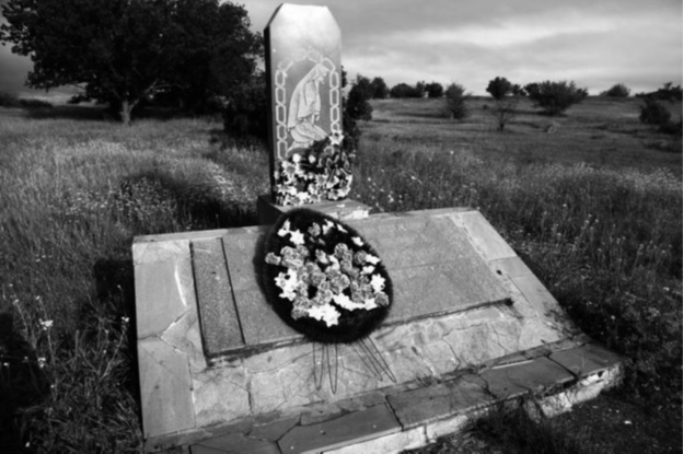 Фото 38. Памятник крымчакам и советским гражданам. Надпись на памятнике: «В ЭТОМ РВУ, РЯДОМ С ДРУГИМИ СОВЕТСКИМИ ГРАЖДАНАМИ, ПОКОЯТСЯ 468 КРЫМЧАКОВ, МИРНЫХ ЖИТЕЛЕЙ КарасубазарА, УМЕРЩВЛЕННЫХ В ФАШИСТСКИХ ДУШЕГУБКАХ 17-18 ЯНВАРЯ 1942 г.»